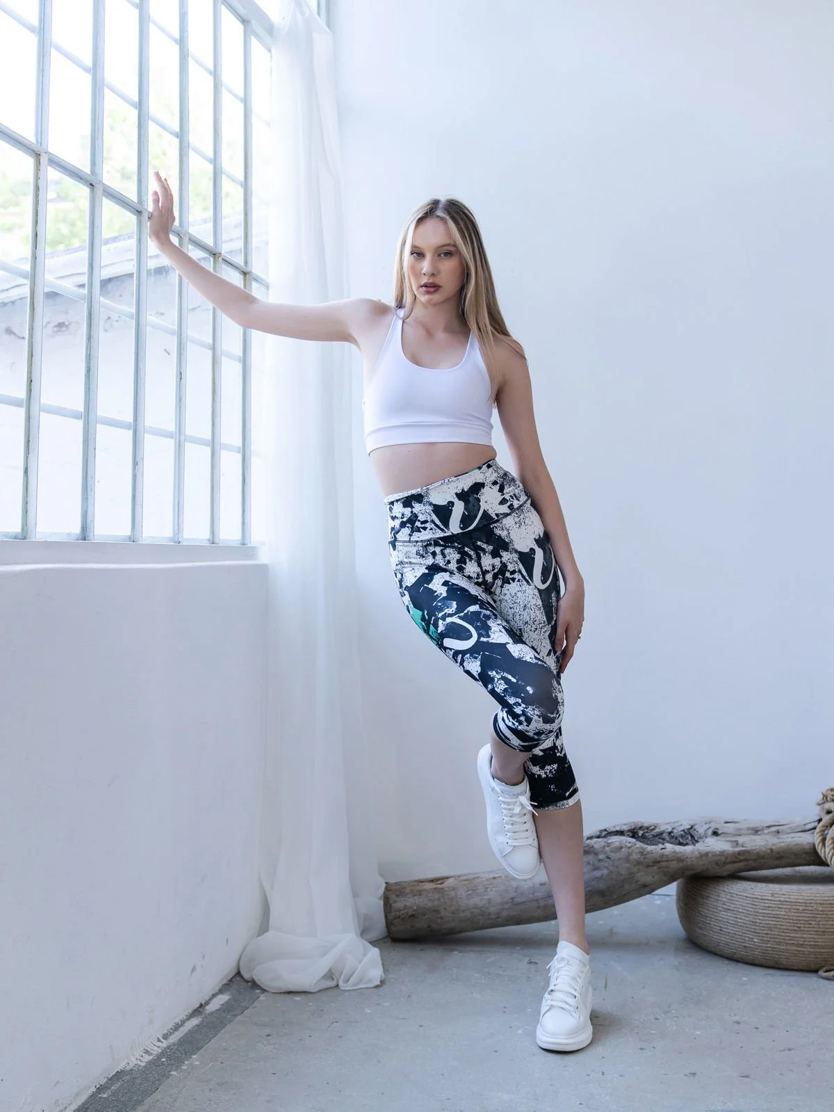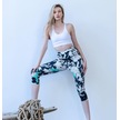 Batik Desen Toparlayıcı Spor Kapri Tayt Siyah - Yeşil - Beyaz