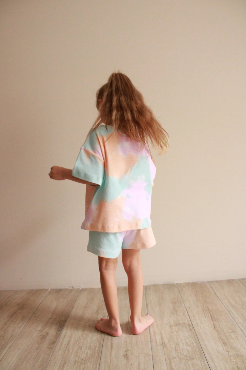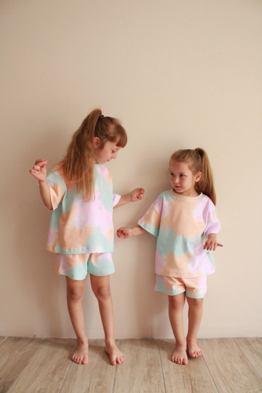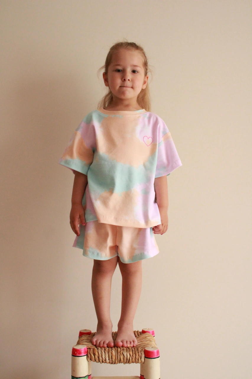 Batik Desenli Kalp Nakışlı Şortlu Takım Çok Renkli