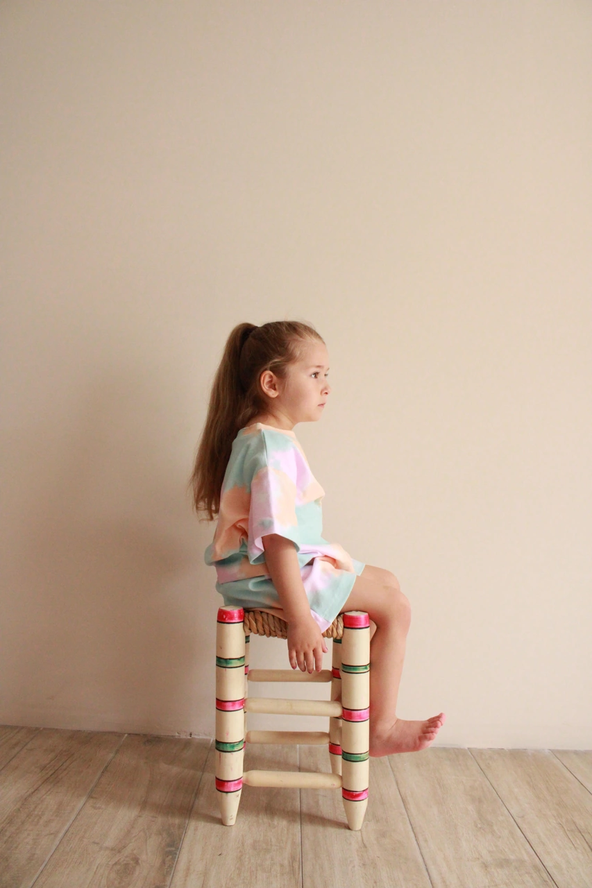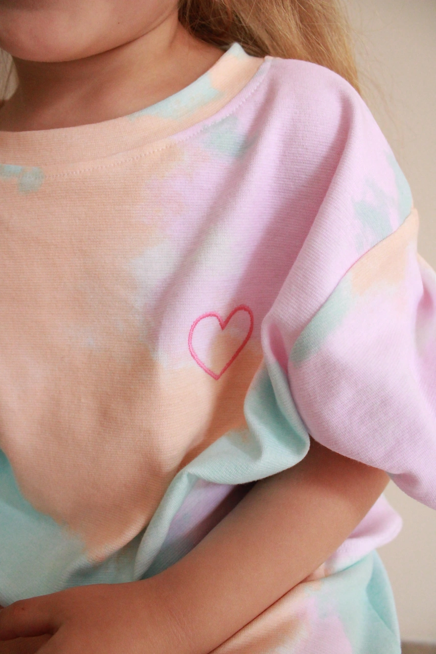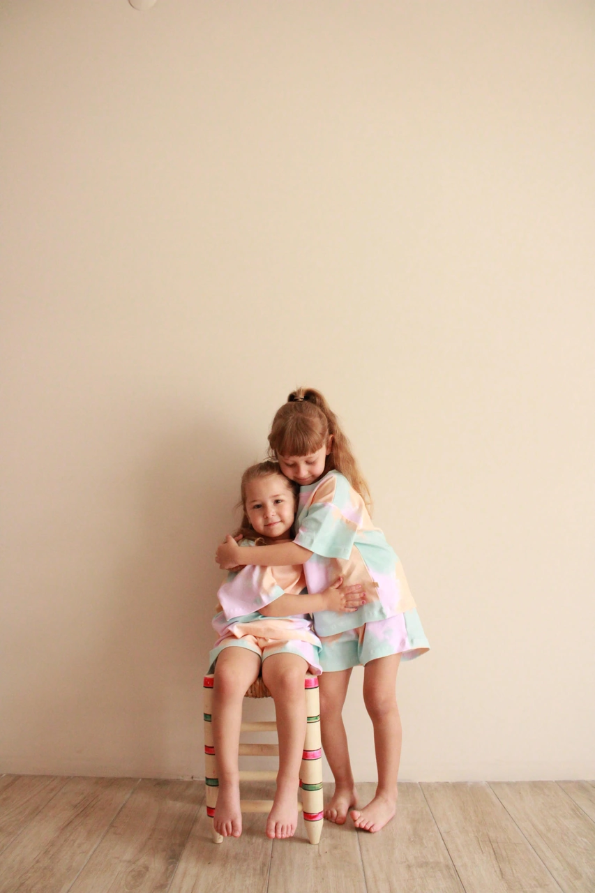 Batik Desenli Kalp Nakışlı Şortlu Takım Çok Renkli
