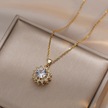Forwhat Zarif Kadın İçin Golden Çelik Zincir Zirkonlu Yıldız Oval Kolye Metalik