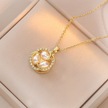 Kadın Çelik Kolye Zirkon Taş Yıldız Zincir Kalp Kararmaz Kolye Pembe