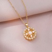 316l Çelik Gold Renk Zincir Beyaz Mineli Güneş İşlemeli Zirkon Taş Detaylı Madalyon Model Kadın Kolye Diğer