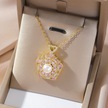 Forwhat Zarif Kadın İçin Golden Çelik Zincir Zirkonlu Yıldız Oval Kolye Metalik