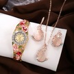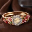 Bayan Kore Stili Moda 3d Çiçek Taşlı Süsleme Takı Saat Kombini Altın