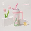 Beautifyy Lale Kahve Kupa Buz Fincanı 1200ml Paslanmaz Çelik Soğuk Su Bardak Termal Yalıtım Pembe Pembe