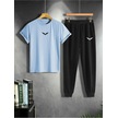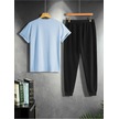 Bebe Mavi T-shirt Siyah Eşofman Altı Jogger - Baskılı Alt Üst Takım Oversize Bisiklet Yaka Bebe Mavisi Siyah