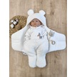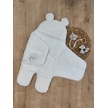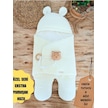 Kışlık Bebebk Battaniyesi Ayaklı Dış Kundak Yumuşak Dokulu Sevimli Ayıcık Nakış Arya Kumaş Pamuklu Ekru