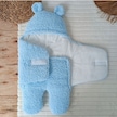 Bebek Dış Kundak Battaniyesi Pelüş Ayaklı Welsoft Uyku Tulumu Kışlık Mont Yenidoğan 0-12 Ay Mavi