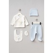 Bebitof %100 Pamuk Sarılan Ayıcık Desenli 5 Parça Yenidoğan Hastane Çıkışı Zıbın Seti Bbtf.amv.20123.46 Mavi