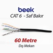 Beek Cat6 U-utp Saf Bakır Dış Mekan Data Kablosu 4x2x23 Awg Pe Siyah Renk 60 Mt