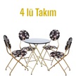 Begonvil Desenli Metal Bahçe Takımı - 4 Sandalye + 1 Masa