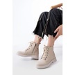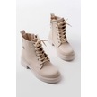 Bej Bağcıklı Fermuarlı Günlük Kadın Bot Bej