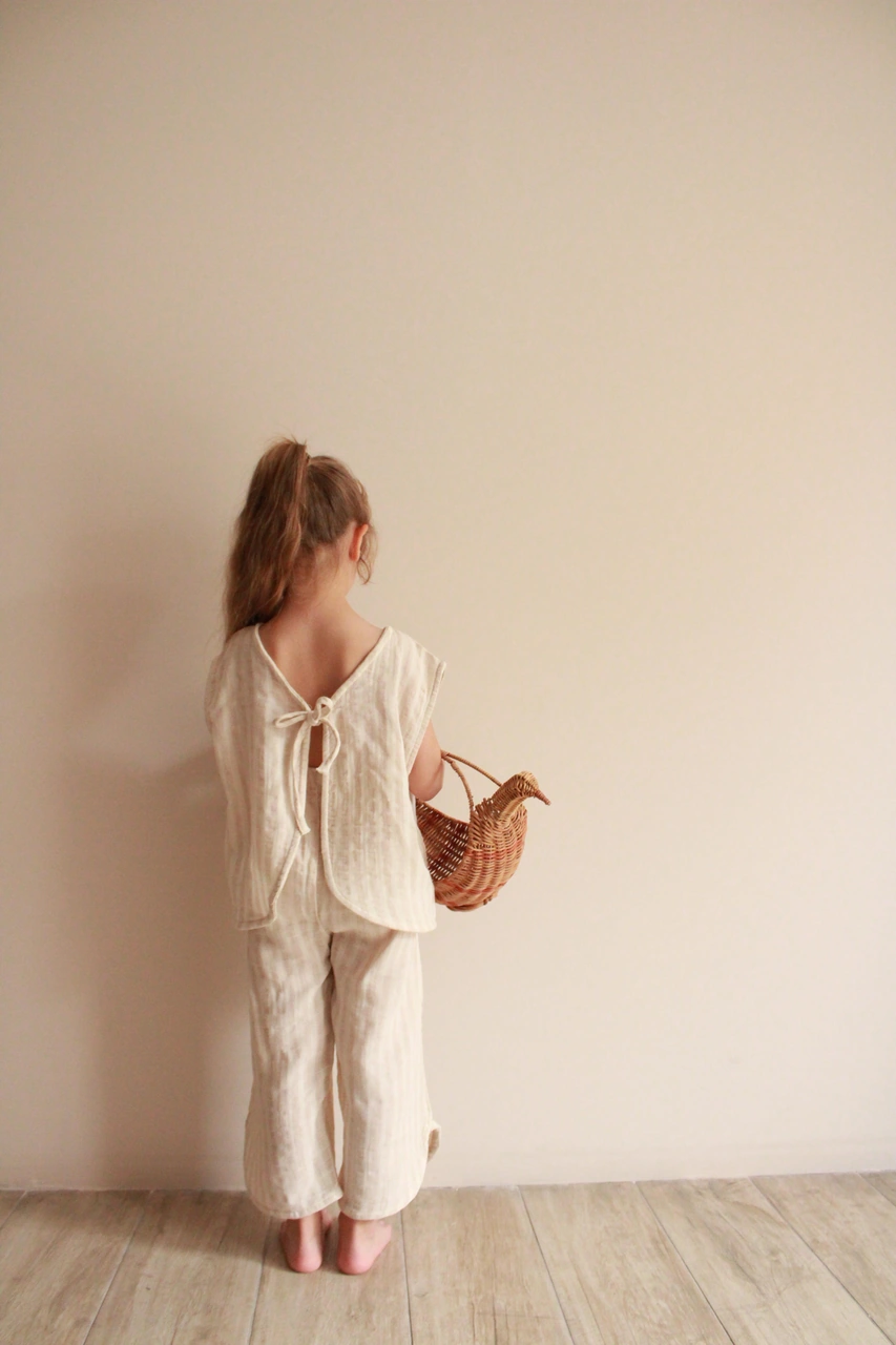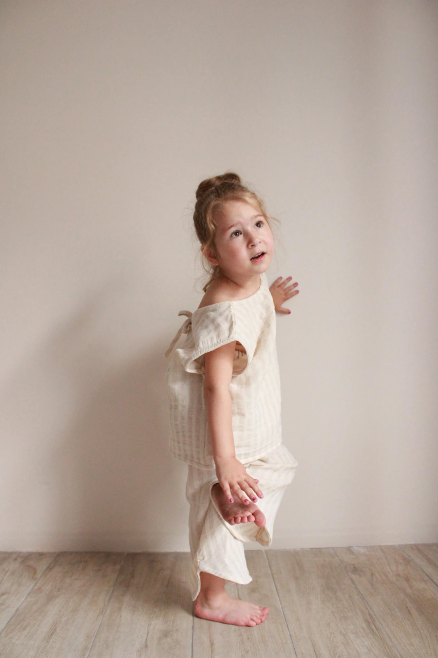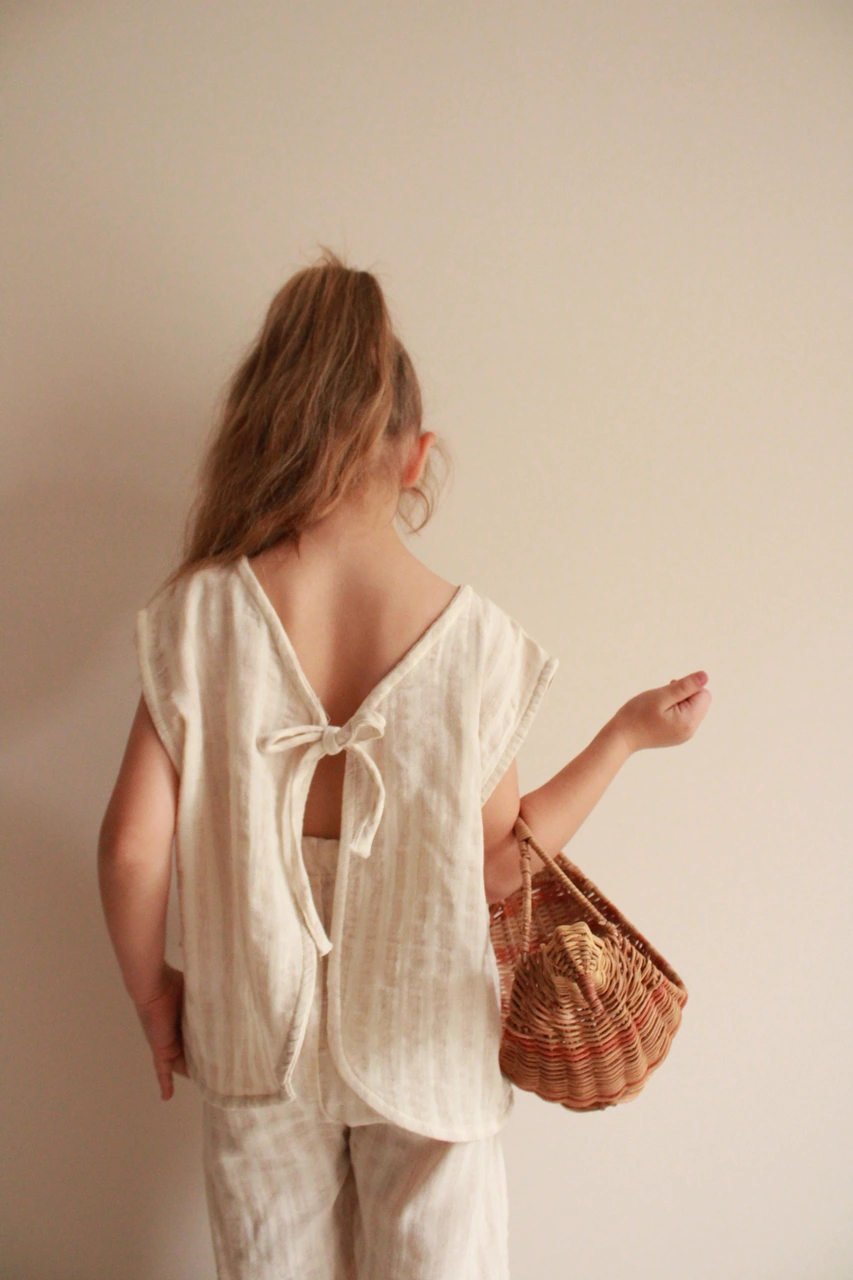 Bej Çizgili Sırt Detaylı Müslin Takım Bej