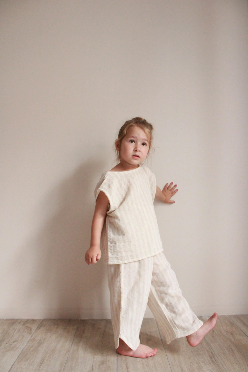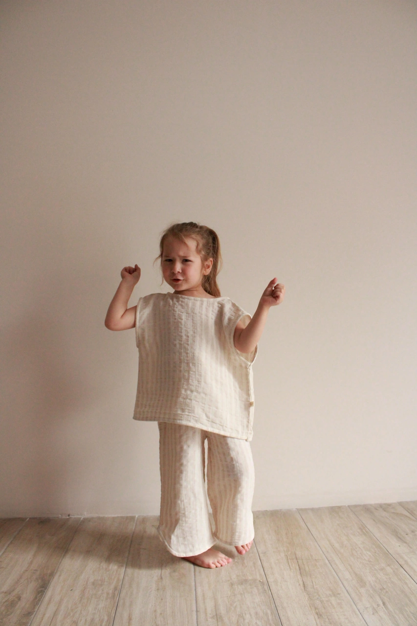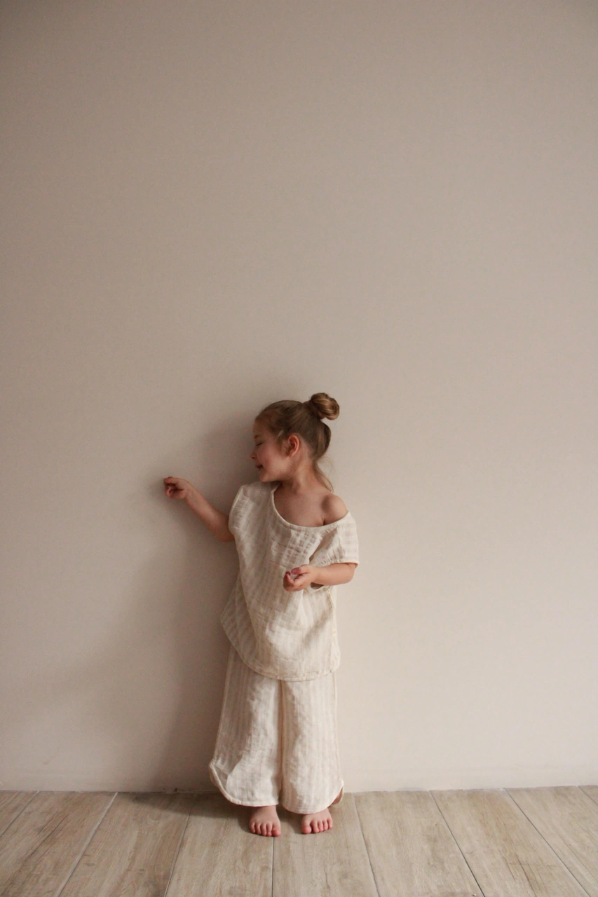 Bej Çizgili Sırt Detaylı Müslin Takım Bej