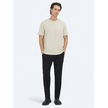 Bej Düz Bisiklet Yaka %100 Pamuk T-shirt Bej