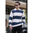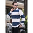Deepsea Erkek Siyah Çizgi Desenli Slim Kesim Tam Balıkçı Yaka Triko Boğazlı Kazak 2505509 Siyah