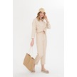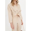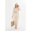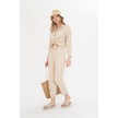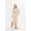 Bej Kadın Keten Gömlek Ve Pantolon Alt Üst Takım Bej
