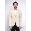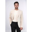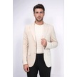 Bej Kendinden Desenli Örme Altın Renk Metal Düğmeli Slim Fit Erkek Blazer Ceket - Wessi Cream