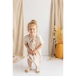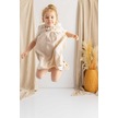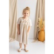 Oliventhekid Bej Keten Göğüs Üzerine Etnik Desen Baskılı Robadan Büzgülü Kısa Kız Çocuk Elbise Bej Bej