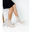 Bej Renk Sivri Burun Kadeh Topuk Fermuarlı Kadın Bot Bej