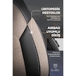 Bej - Siyah Butti Bello Serisi Keten Kumaş Premium Oto Koltuk Kılıfı Ortopedik Destekli, Ön Arka Tam Set