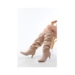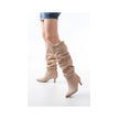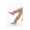Bej Süet İnce Topuklu Günlük Bayan Çizme Bej