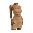 Bej Tasarım Bel Dekolteli Askılı Mini Elbise Bej