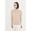 Bej Tesettür Balıkçı Yaka Boyunluklu Kolluk Viskon Düz 1025 12 Bej