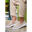 Bej Triko Yüksek Taban Bağcıksız Günlük Erkek Ayakkabısı Bej