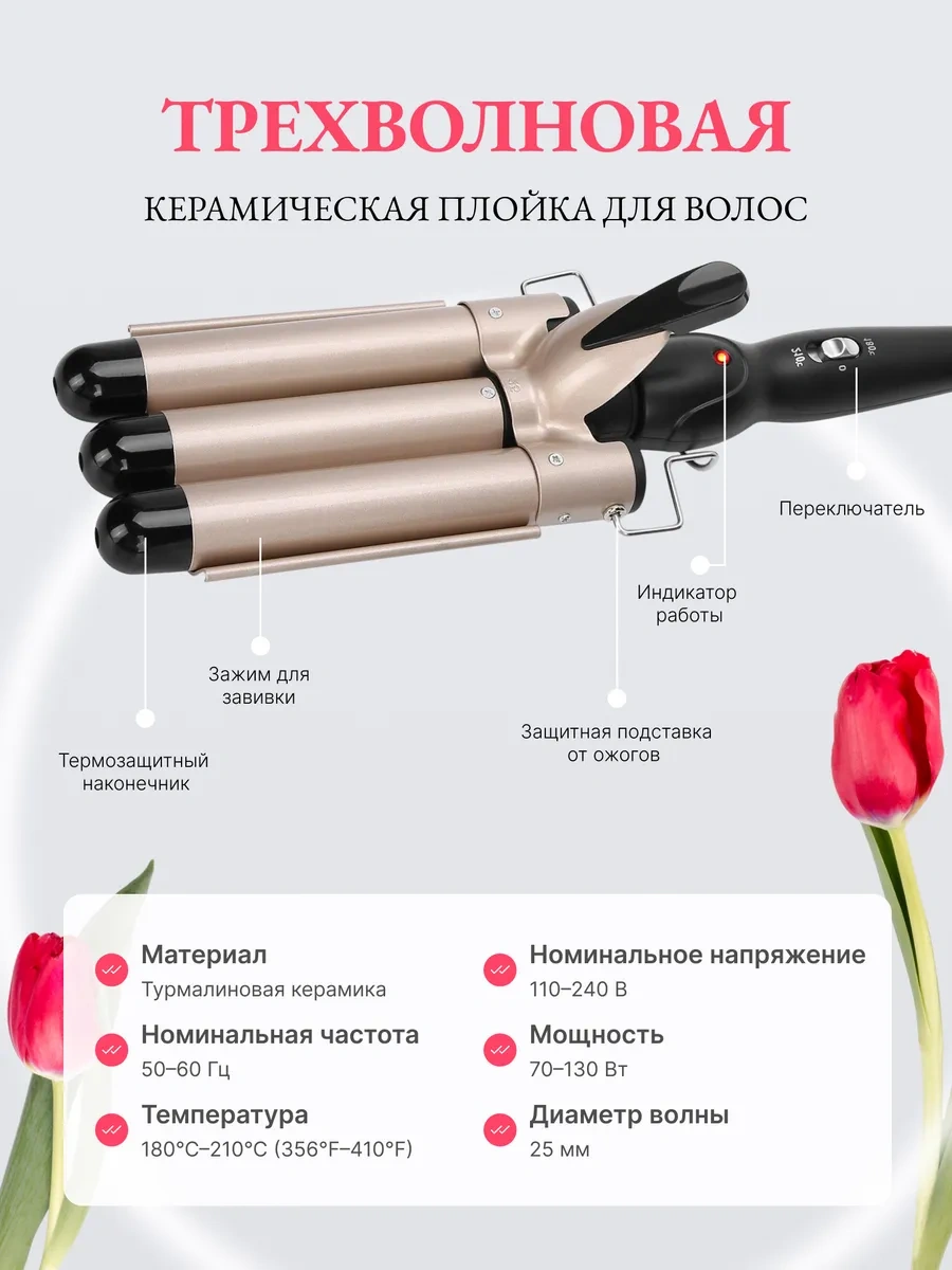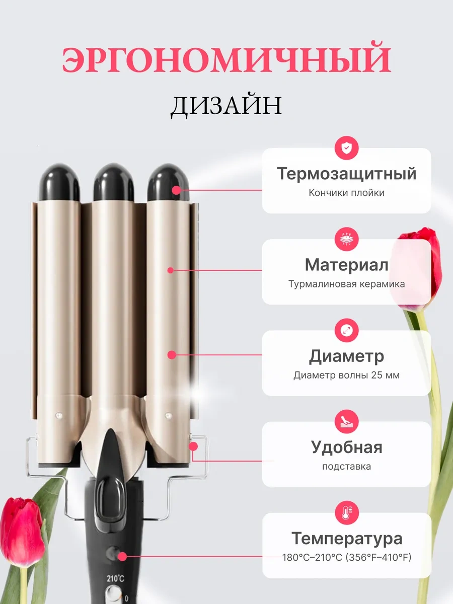 Bej Üç Dalgalı Saç Düzleştirici Maşa Ve Bukle Maşası 423864669 Bej