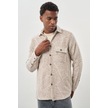 Bej Uzun Kol Kendinden Desenli Gabardin Sert Yaka Kapaklı Cep Pamuklu Classic Comfort Fit Gömlek 1004245167 Bej