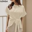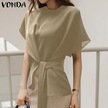 Bej Vonda Yaz Kadın Kısa Kollu Bisiklet Yaka Tunik Üstleri Rahat Düz Renk Pilili Bluz T-shirt S-5xl