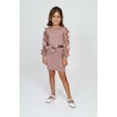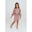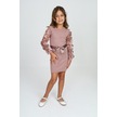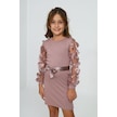 Belden Bağlamalı Tül Detaylı Çocuk Elbise Mykids Collection Pudra