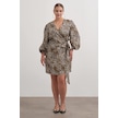 Beli Kuşaklı Leopar Elbise-2571 Kahverengi