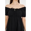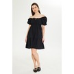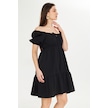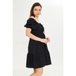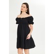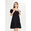 Beli Lastikli Buzgulu Poplin Elbise Siyah