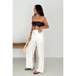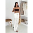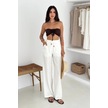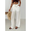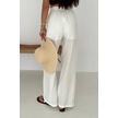 Beli Lastikli Geniş Paça Pantolon Beyaz Beyaz