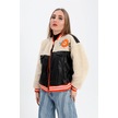 Beli Lastikli Nakışlı Derili Peluş Ceket Mont - Siyah-siyah Siyah