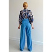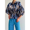 Beli Lastikli Saten Gömlek - Mavi Karışık Çok Renkli