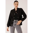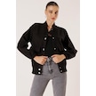 Beli Lastikli Torba Cepli Kaşe Bomber Mont-35004-Siyah