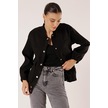 Dericlub Kasuka Jumbo Gerçek Deri Kadın Mont Siyah