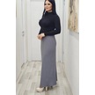 Beli Lastikli Verev Kesim Büyük Beden Etek 6006-gri Gri