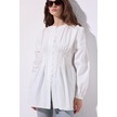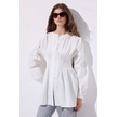 Beli Pile Detaylı Uzun Kol Bluz Ekru Ekru