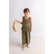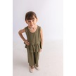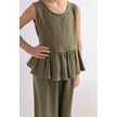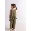 Oliventhekid Beli Volanlı Sırtı Düğmeli Kolsuz Keten Kız Çocuk Tulum Haki Haki