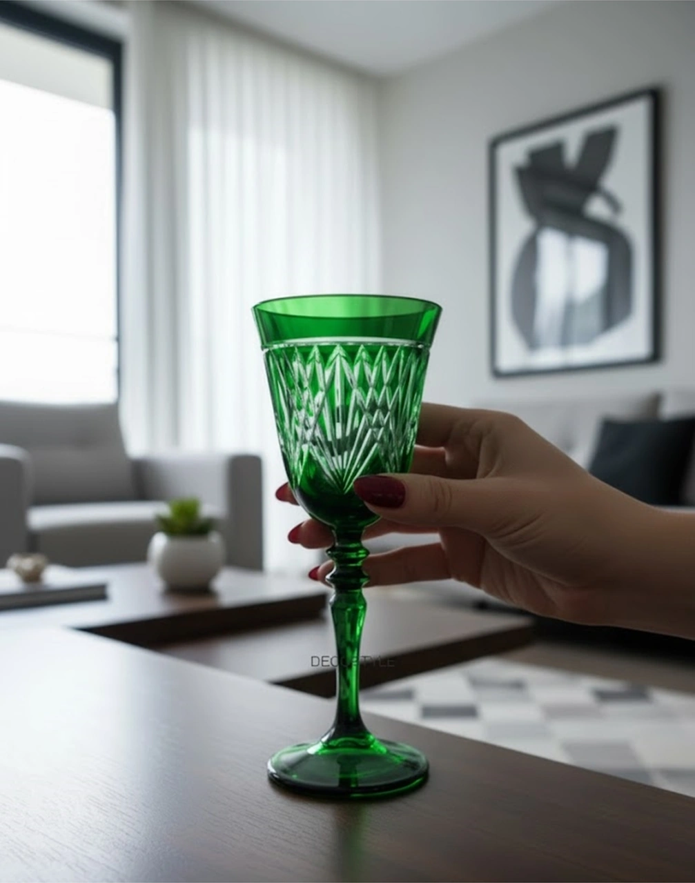 Bella % 100 El Yapımı Dekorlu Cam Kadeh Bardak Paşabahçe Yeşil