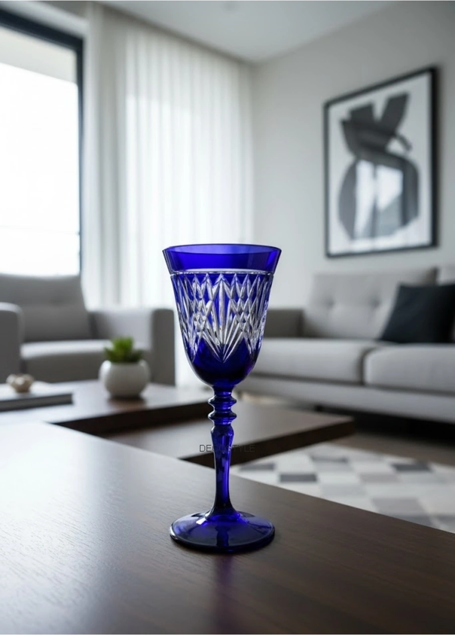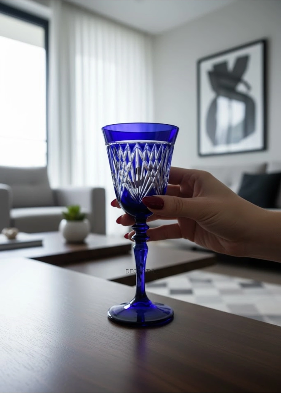 Bella El Kesmesi Cam Kadeh Bardak Paşabahçe Kristal Dekor Kobalt Mavi