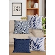 Belle Benoit Lacivert Beyaz Baskılı Runner & Koltuk Kırlent Kılıfı Lacivert - Beyaz