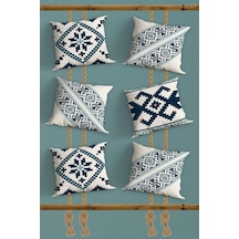 Belle Benoit Yılbaşı Baskılı Dekoratif 6'lı Koltuk Kırlent Kılıfı Beyaz - Lacivert