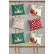 Belle Benoit Yılbaşı Baskılı Dekoratif 6'lı Koltuk Kırlent Kılıfı Yeşil - Kırmızı