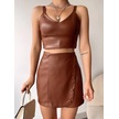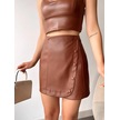 Beş Düğmeli Oval Deri Etek Kahve H240068 Kahve