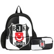 Beşiktaş 2 Bölmeli 1903 Logo Baskılı Suni Deri Anaokulu Çantası + Kalemlik Siyah